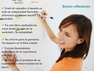 Ambas conferencias de gran valor como aporte al conocimiento en las disciplinas de Ciencias Administrativas y Gerenciales, en la oportunidad de conocer las obras y la vida de Peter Drucker, quien fuera un gran visionario de temas que hoy en día están altamente vigentes en nuestra sociedad.